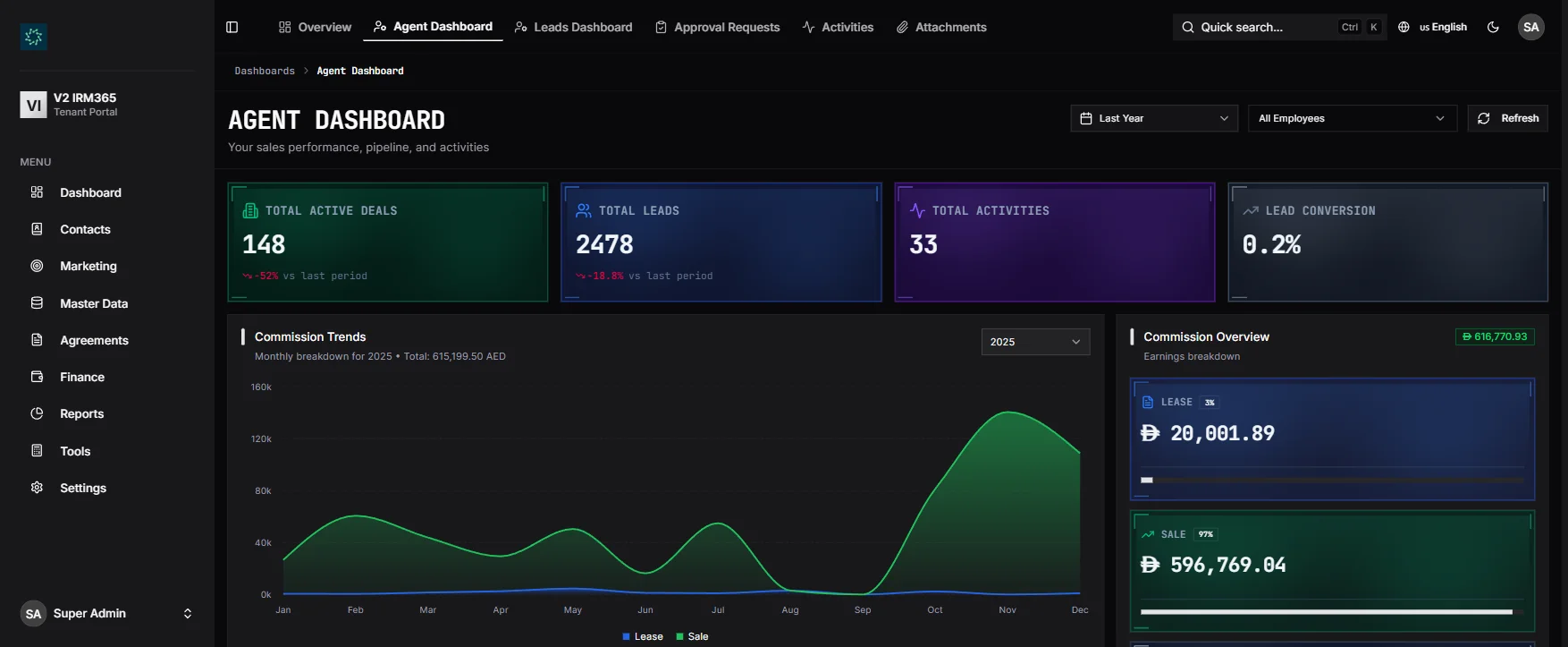 Manage leads, leases, sales, invoices, and commissions from a single platform — built for modern real estate teams.